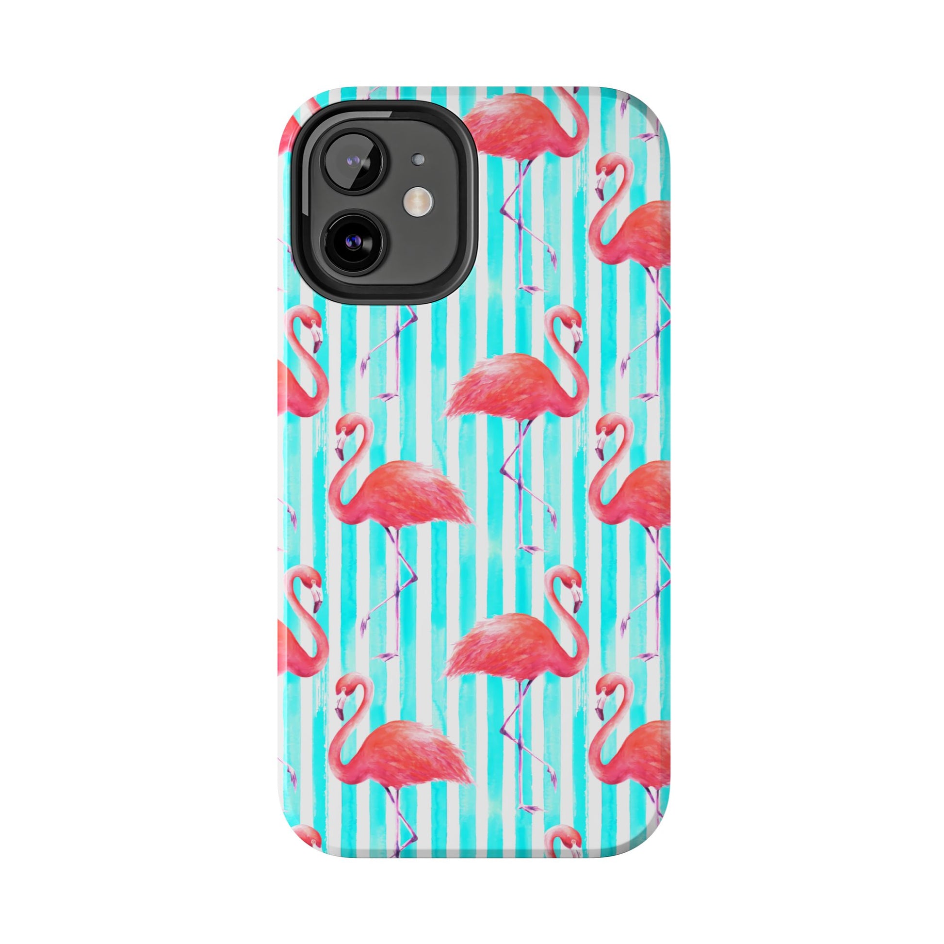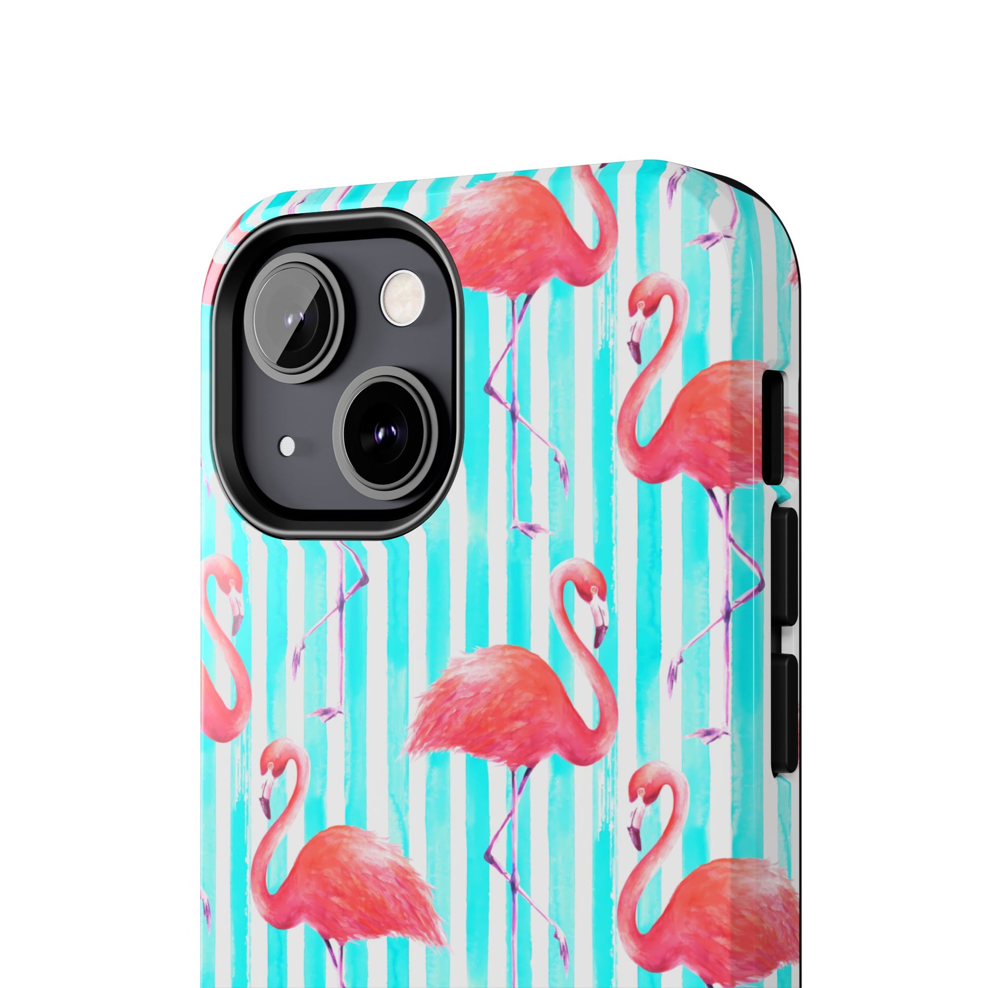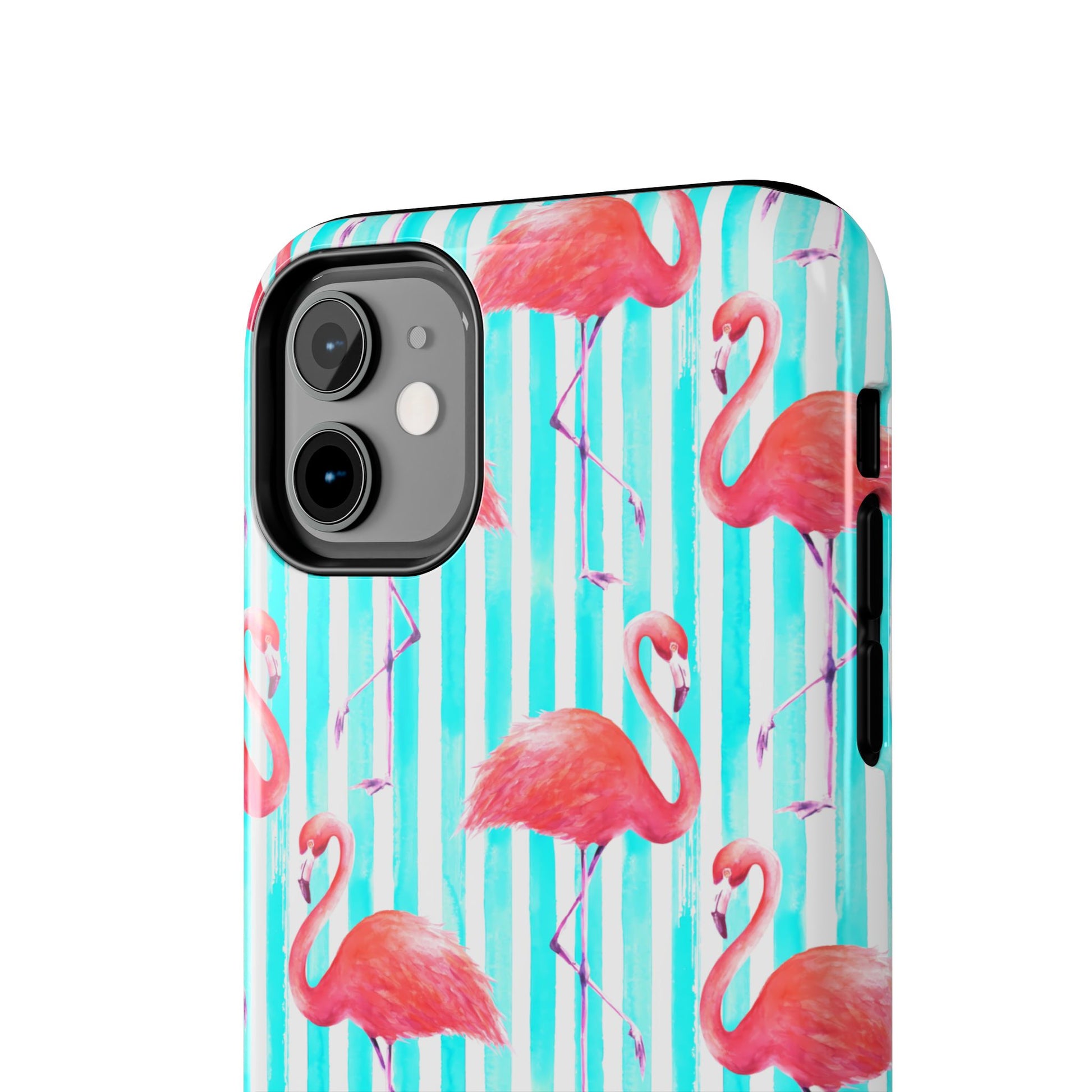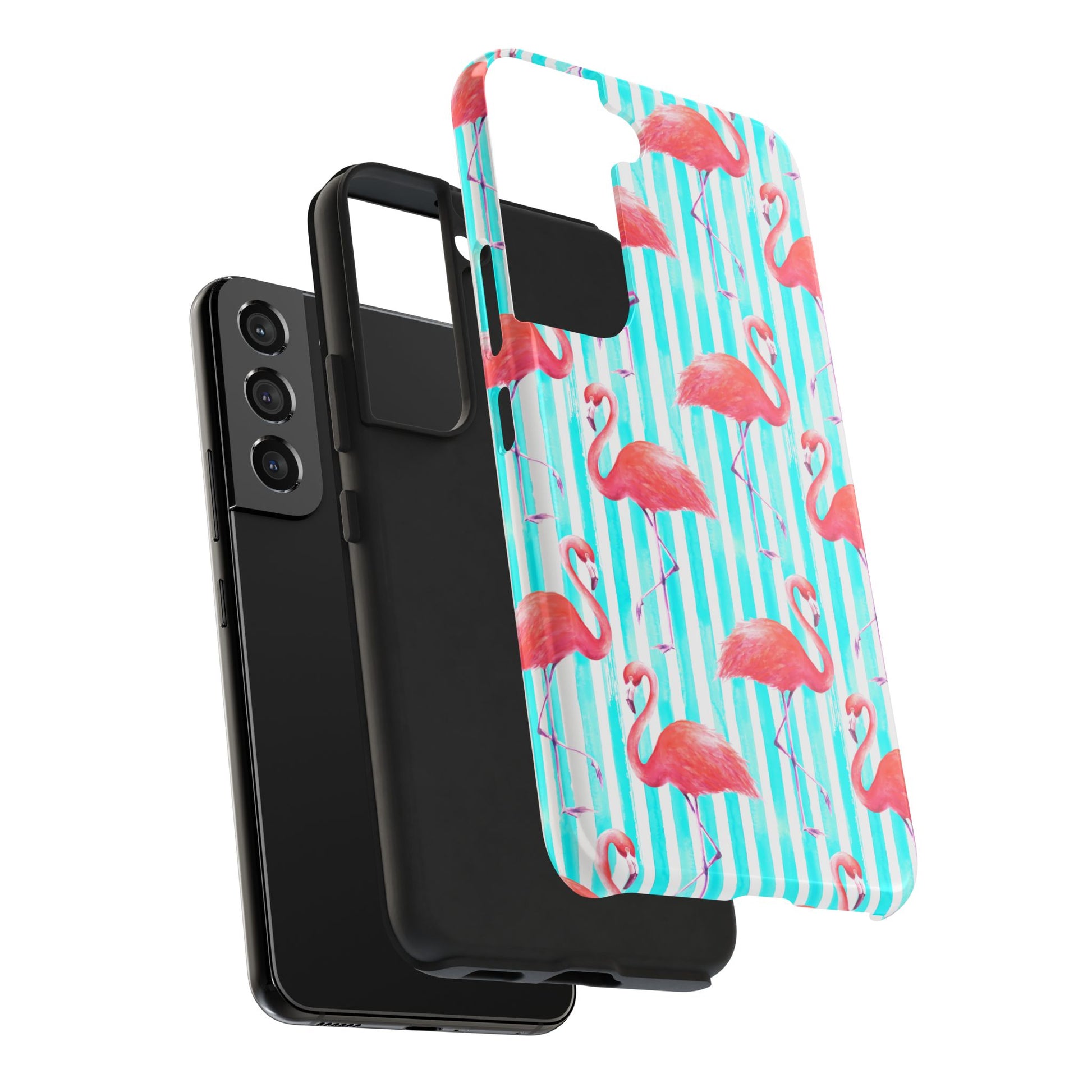 Introducing a playful and vibrant Tough Phone Case, perfect for those who want to showcase their unique style while protecting their device. With a fun flamingo design set against a cheerful blue and white striped background, this case brings a refreshing vibe to your daily routine. It's not just about looks; this case provides heavy-duty protection and is an ideal accessory for beach lovers, tropical vacationers, or anyone who enjoys a splash of color. Perfect for summer gatherings, birthdays, or as a thoughtful gift for friends and family who appreciate both functionality and fun in their tech accessories. Enhance your phone's personality while ensuring it stays safe from bumps and scratches!
